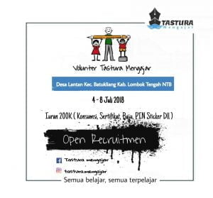 Oleh karenanya pada tanggal 4-8 Juli 2018 Tastura Mengajar akan kembali mengabdi untuk Negeri kita tercinta ini. Dalam pelaksanaannya kami membutuhkan volunteer. Mari bergabung bersama, kami di program :